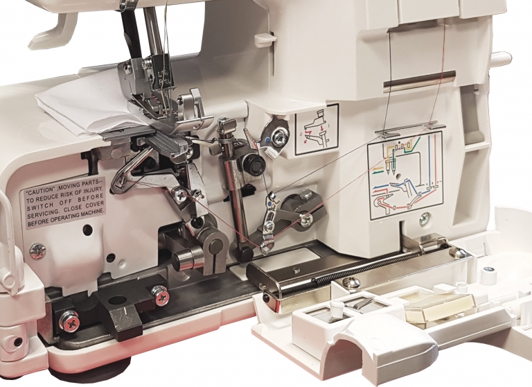 Jaguar 489, like other Jaguar overlocks, has Jaguar's unique "easy threading system", which means that the front of the machine opens 180 degrees, allowing easy access to the threading mechanism - this system is not available on any other brand's overlocks. You don't need any special tools, overlocking is really very easy. You can also easily clean all mechanisms and lubricate moving parts to keep your machine impeccably clean, saving you time and money on service costs.