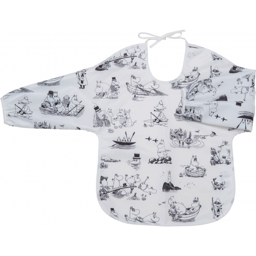 Tove Jansson's Moomins delight generation after generation! This time in the illustration of the bib, the Moomins are adventuring by the water in beautiful archipelago scenery. Participating in the common dining moments are, of course, Moomin Troll, Snork Maiden, Snuff Moon and many other Moomin Valley residents. Oeko-Tex-certified Rätt Start Moomin bibs are waterproof, so purees and drinks are not absorbed through it and mess up your child's clothes. The long sleeves of the bib also protect the arms during meals