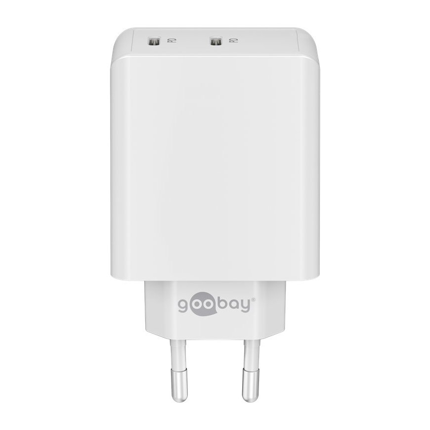 Goobay 61758. Тип зарядного устройства: Для помещений, Тип источника питания: Кабель переменного тока, Совместимые устройства: Цифровая камера, Наушники, Мобильный телефон, Умные часы, Планшет. Входное напряжение: 100 - 240 V. Количество USB портов С-типа: 2, Быстрая зарядка. Цвет товара: Белый