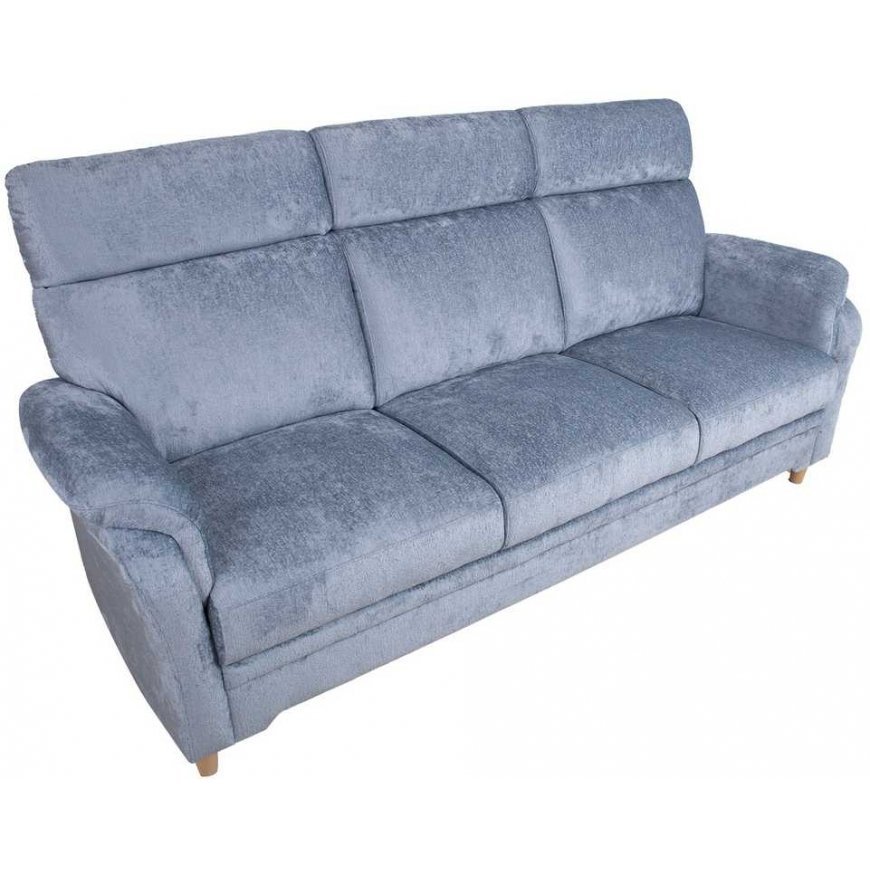 Sofa INGRID 3-seater, greyish blue. A stylish, very comfortable sofa with high backrests perfectly supports your back and neck. The sofa frame is made of plywood and solid wood. Sitting comfort is ensured by zig-zag suspension and high-quality HR3030 foam padding. Backrest cushions are filled with soft silicone fiber. The sofa is completely covered with velvety polyester fabric. The overall dimensions of the sofa are 214x83xH105cm. Seat width 172cm, seat depth 50cm, seat height 48cm. The height of the armrest from the ground is 68 cm. The sofa has light wooden legs H10cm. The sofa is manufactured in Estonia.
