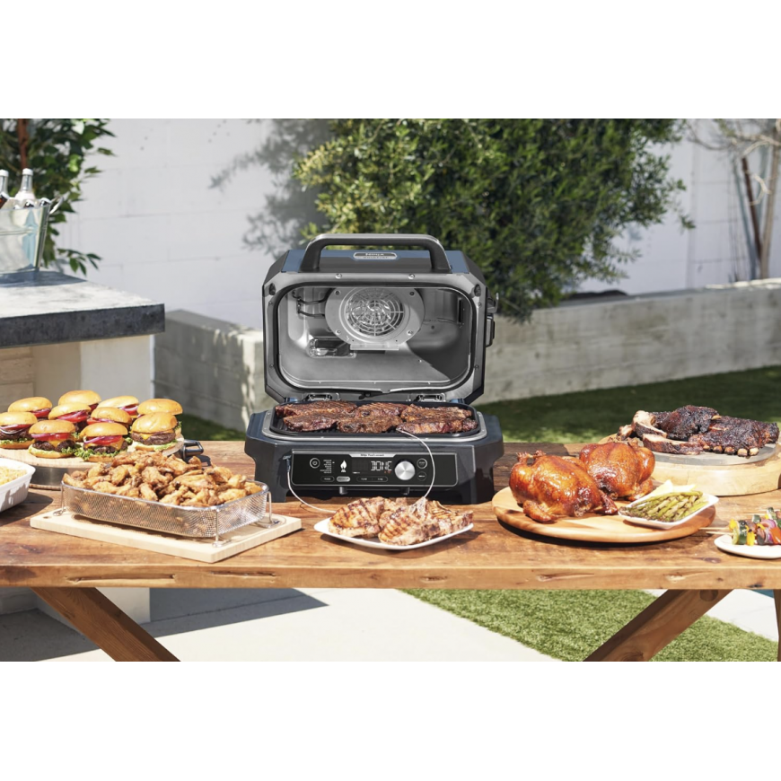 7 ФУНКЦИЙ ДЛЯ УЛИЧНОЙ ГОТОВКИ: BBQ-гриль, копчение, аэрогриль, запекание, выпечка, сушка и разогрев. Система Smart Cook: встроенный зонд контролирует готовность мяса и рыбы для идеального результата.