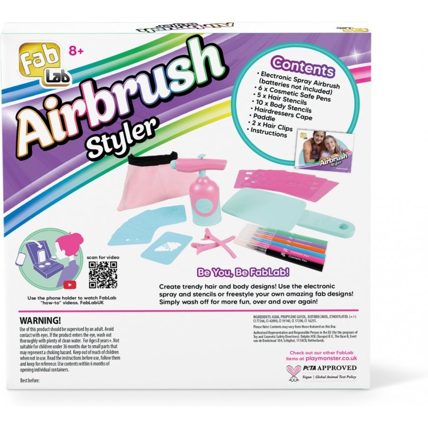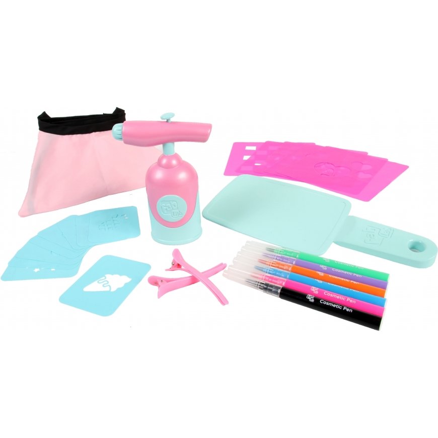 You can create trendy patterns on your hair and body with FabLab's Airbrush Styler series! Use the electronic Airbrush spray device and the included templates, and you can be stylish in no time! Of course you can