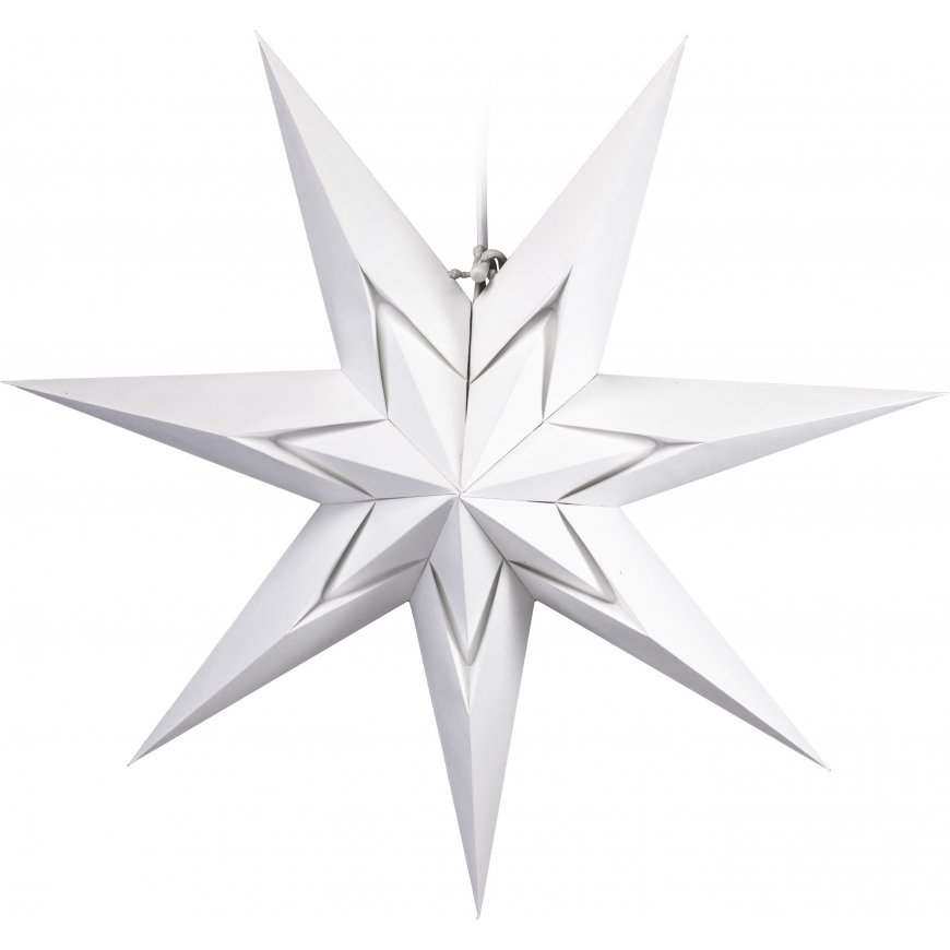 The Enne Clarisse paper star has a modern 3D design and is classic white in color, so it fits many different interior styles. The diameter of the star is 50 cm and it has seven branches. The star comes with a 3.5m lamp cord with E14