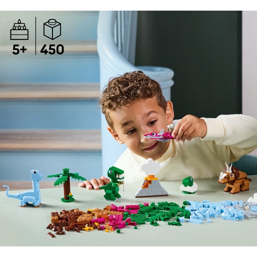LEGO Classic Creative Dinosaurs (11041) is a dinosaur-themed building and play set for kids, featuring blue, green, purple and brown bricks. This endlessly versatile building set is a great toy that will develop the imagination of children aged 5 and up.