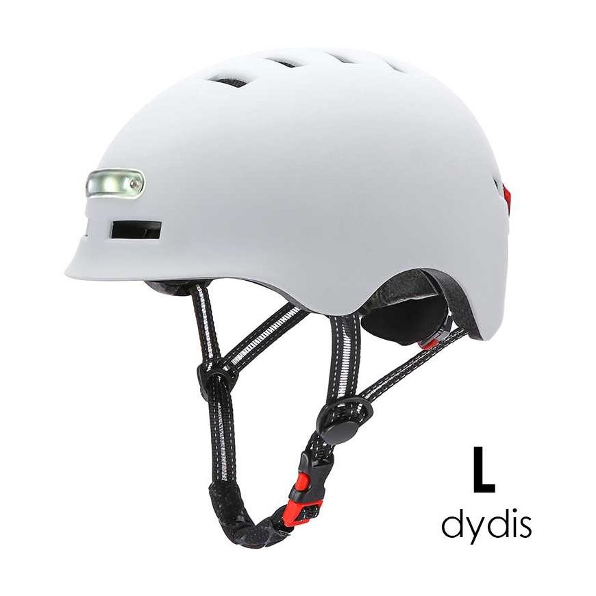 The white LED lights on the front and the red LED lights on the back of the helmet can operate in 4 different modes, which you can conveniently select with a button on the back of the helmet. The lights are charged with a micro USB cable.