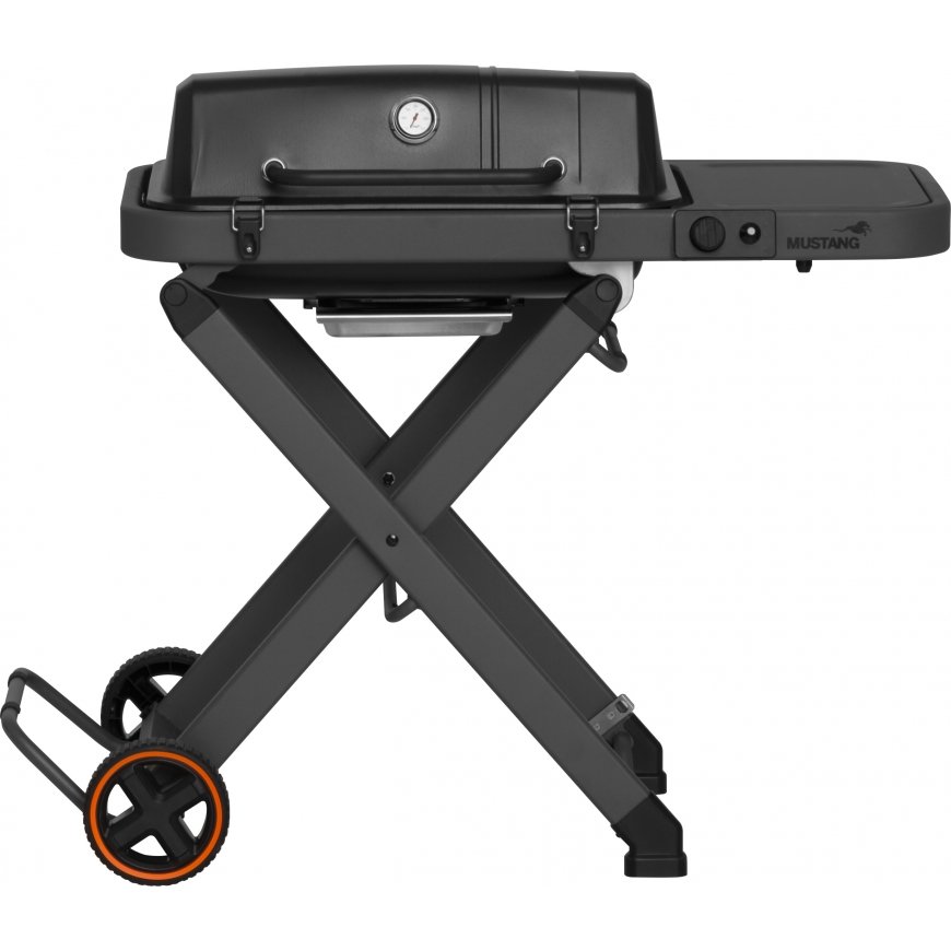В Mustang Foldissa есть прямоугольная горелка, которая равномерно распределяет тепло по всей площади гриля. Благодаря чугунной решетке и грилю вы получите идеальную корочку как для стейков, так и для овощей и других деликатесов. Два больших колеса и прочная,