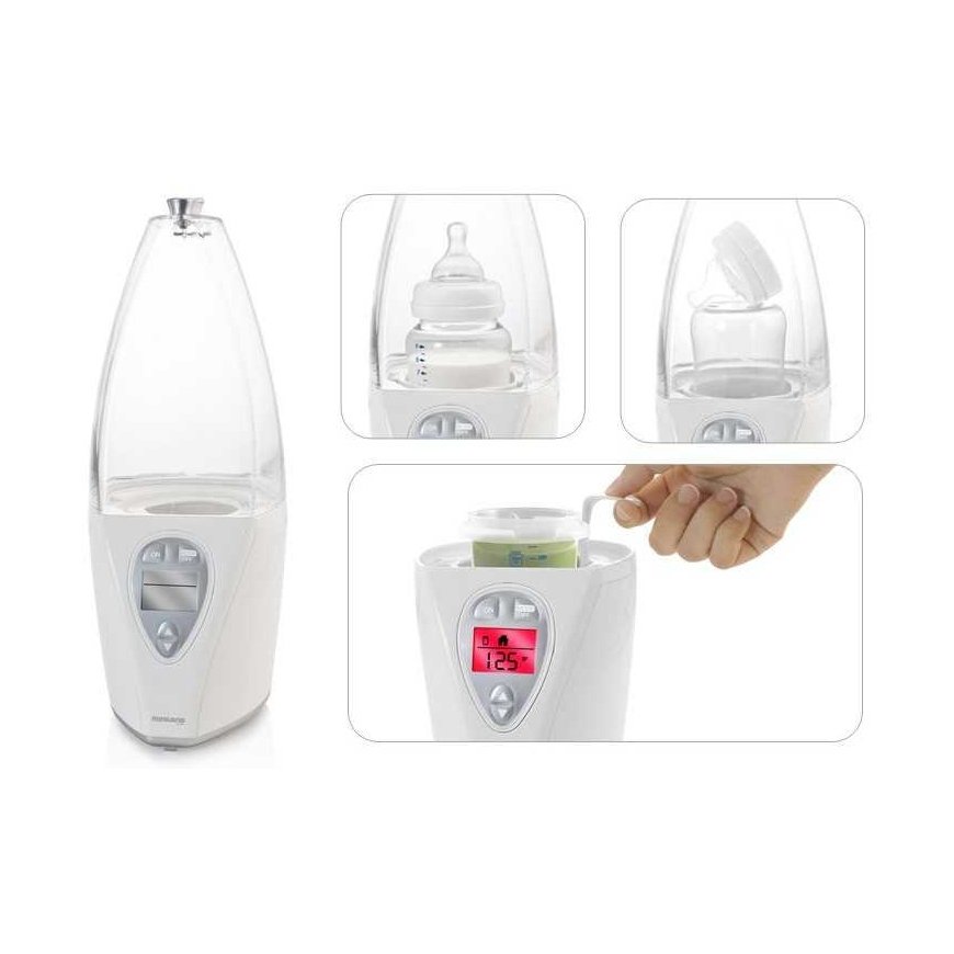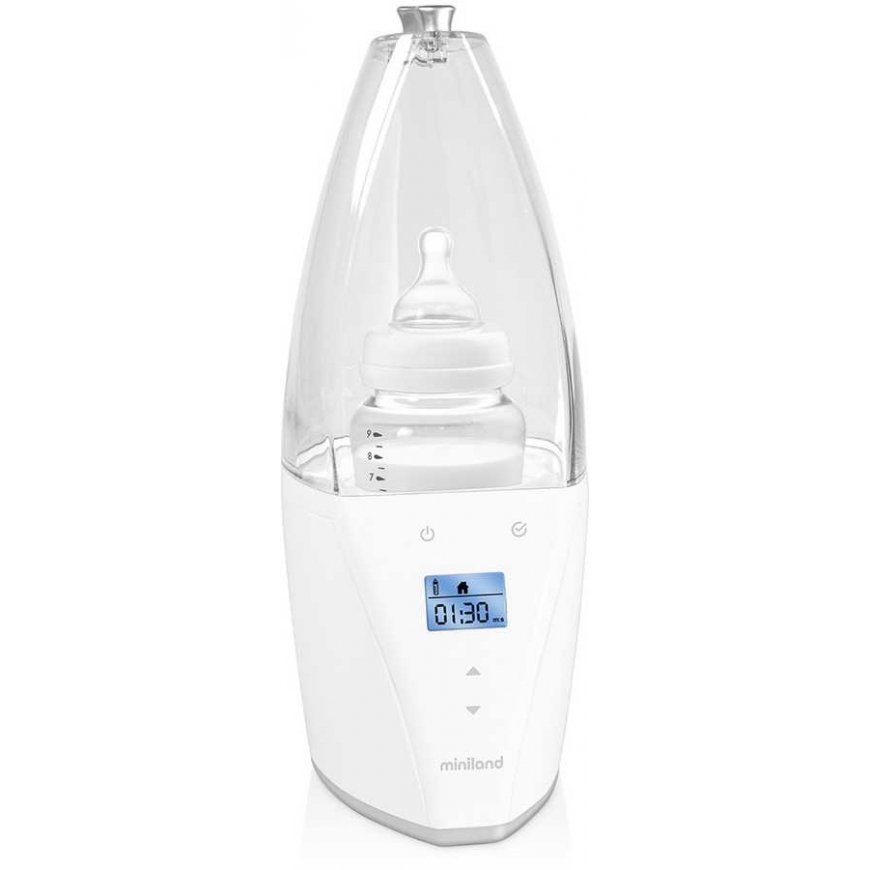 Обогреватель с экраном для дома и автомобиля используется для обогрева и стерилизации. Продукт автоматически рассчитывает время, необходимое для выполнения каждой операции. Обогреватель очень интуитивен и точен, нагревая блюда до идеальной температуры. Самый современный цифровой обогреватель для бутылочек и стерилизатор в одном. Автоматически рассчитывает время, необходимое для подогрева, в зависимости от типа пищи, её размера или начальной температуры, поэтому подогрев происходит быстро и правильно. Не нужно измерять воду. Необходимо установить количество воды, используемой в устройстве. Независимо от размера и температуры бутылочки или контейнера с пищей, просто налейте столько воды, сколько показывает мерный стакан внутри устройства. Всё всегда контролируется для удобства использования и интуитивности. Экран шаг за шагом интуитивно помогает выбрать нужный вариант и всегда показывает всю информацию о происходящих процессах, поэтому им будет легче и быстрее пользоваться. Он нагревает бутылочки и банки простым, естественным способом. Он нагревает естественно благодаря высокотемпературному пару, поэтому идеально подходит для подогрева материнского молока. Легкая стерилизация в одном и том же устройстве. В обогревателе можно одновременно стерилизовать и бутылочку, и все её принадлежности. Нагревает бутылочки и банки дома или в автомобиле. Благодаря адаптеру обогреватель можно использовать дома и в поездках. Исключительная оболочка без BPA и изготовлена из материала Tritan. Крышка очень прочная и устойчива. Материал Tritan обладает отличной химической стойкостью и высокой термостойкостью (не выделяет вредный бисфенол А при воздействии тепла). Программирование другого питания. Обогреватель позволяет запрограммировать время, после которого начнется подогрев, чтобы вы могли подогревать пищу тогда, когда она вам понадобится. Визуальные и звуковые предупреждения, обеспечивающие максимальную безопасность. Как визуальные, так и звуковые предупреждения информируют, когда процесс подогрева завершен или когда нет воды, после чего обогреватель автоматически отключается. Современный дизайн, подходящий для любой кухни. Серебристый цвет сделает обогреватель любимым кухонным прибором родителей. Характеристики: умный, обогрев, стерилизация, отлично подходит для подогрева материнского молока, для использования дома и в автомобиле, таймер. Техническая информация: универсальный, подходит для всех типов бутылочек. Можно мыть в посудомоечной машине: только принадлежности. Особенности: время нагрева (мин.): 2,5 - 240 мл бутылочек, от температуры окружающей среды, время стерилизации (мин.): 7,5, экран, световой индикатор, звуковой индикатор, автоматическое отключение, кабельная катушка. Принадлежности: провод для автомобиля, контейнер с мерным стаканом.