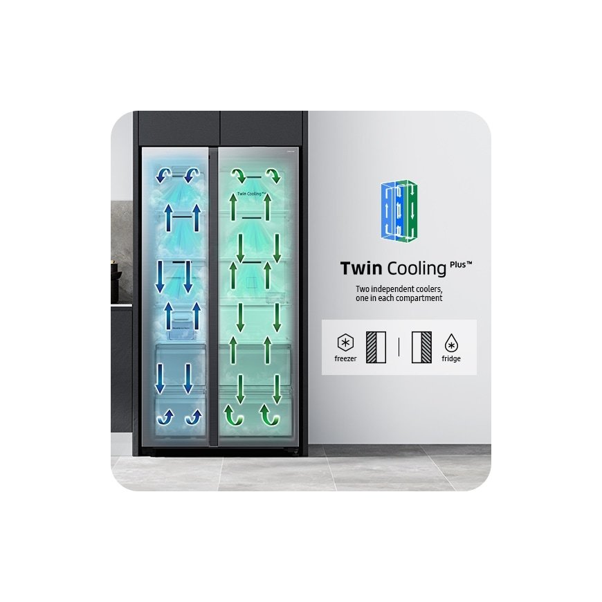 Оплати 5x267.45€Samsung RS70F64KEFEO, E, ЧЕРНЫЙ DOI , объем холодильника/морозильника: 640 (420/220) л, размеры (в x ш x г, мм) 1784x912x726, «Mono Cooling» охлаждение, NoFrost, металлический охлаждающий канал, AI инверторный компрессор, I&W диспенсер (водопровод) , ....