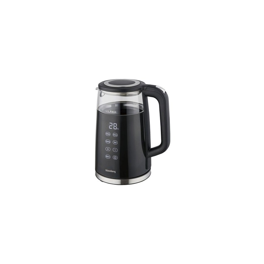 Электрический чайник Klausberg KB 7894 из боросиликатного стекла с LED-панелью, черного цвета, мощность 1850–2200 Вт и объем 1,7 л. Вместительный объем 1,7 литра делает его идеальным выбором для всей семьи или приема гостей, а мощный нагрев 1850–2200 Вт позволяет вскипятить воду всего за несколько минут. Чайник оснащен 13-ступенчатой регулировкой температуры от 40°C до 100°C с шагом 5°C, обеспечивая полный контроль при приготовлении различных напитков, а также 4 готовыми программами на 70°C, 80°C, 90°C и 100°C для точного заваривания разных видов чая и настоев. Функция поддержания температуры (WARM) сохраняет выбранную температуру до 2 часов. Прочный корпус из боросиликатного стекла гигиеничен и устойчив к высоким температурам, а современная сенсорная LED-панель обеспечивает интуитивно понятное управление. Поворотная база на 360° удобна для правшей и левшей, плоский скрытый нагревательный элемент облегчает очистку, а эргономичная ручка и продуманный носик обеспечивают удобное наливание воды. Для безопасности и устойчивости предусмотрены автоматическое отключение после кипячения, защита от перегрева, нескользящее основание и съемный фильтр для защиты от осадка, обеспечивая чистую воду в каждой чашке, а элегантный черный дизайн с серебристыми элементами подходит как для современных, так и для классических интерьеров.