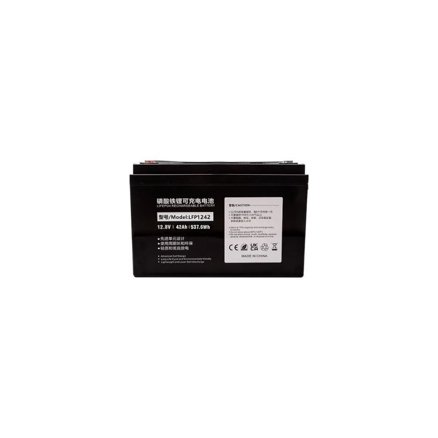 Battery LiFePO4 12.8V, of capacity 42Ah, 537.6 Wh. Lithium iron phosphate battery with exceptional durability, energy efficiency and charging speed for a wide range of applications