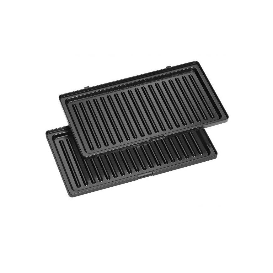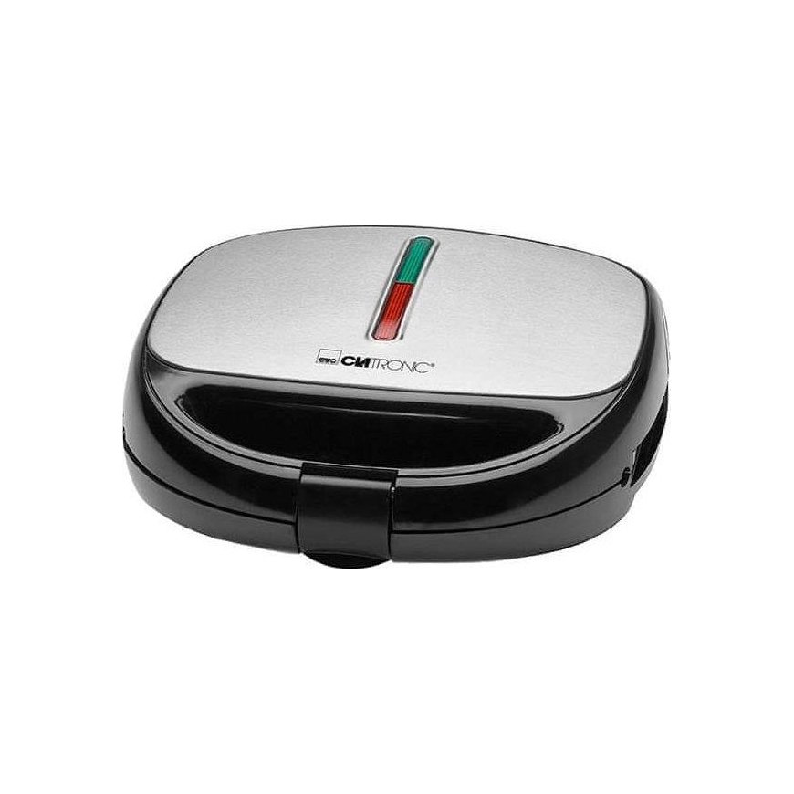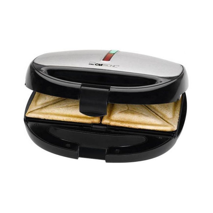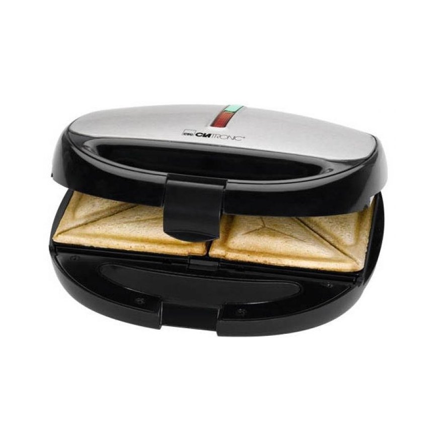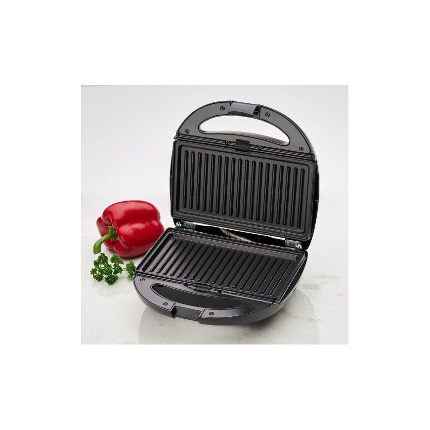- Sandwich toaster, waffle maker and contact grill\n- Versatile use by three different removable plates (sandwich/waffle/grill plates), eg for Belgian waffles and tasty sandwich\n- variations, as well as for fast two-sided contact grilling \n- Stainless steel insert\n- Baking plates non-stick coated and changeable\n- Heat insulated handle\n- 2 control lights for power and heating (baking lights)\n- High stability through rubberized feet\n- Locking system \n- Overheating protection\n- 220-240 V, 50/60 Hz, 800 W