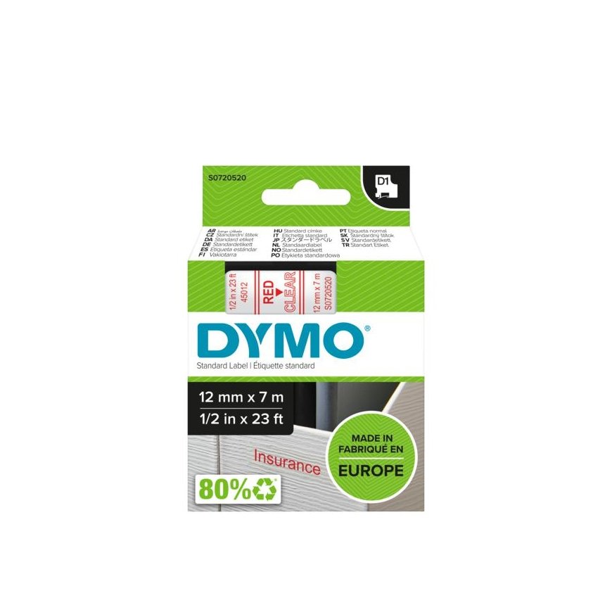 DYMO D1 -Standard Labels - Red on Transparent - 12mm x 7m