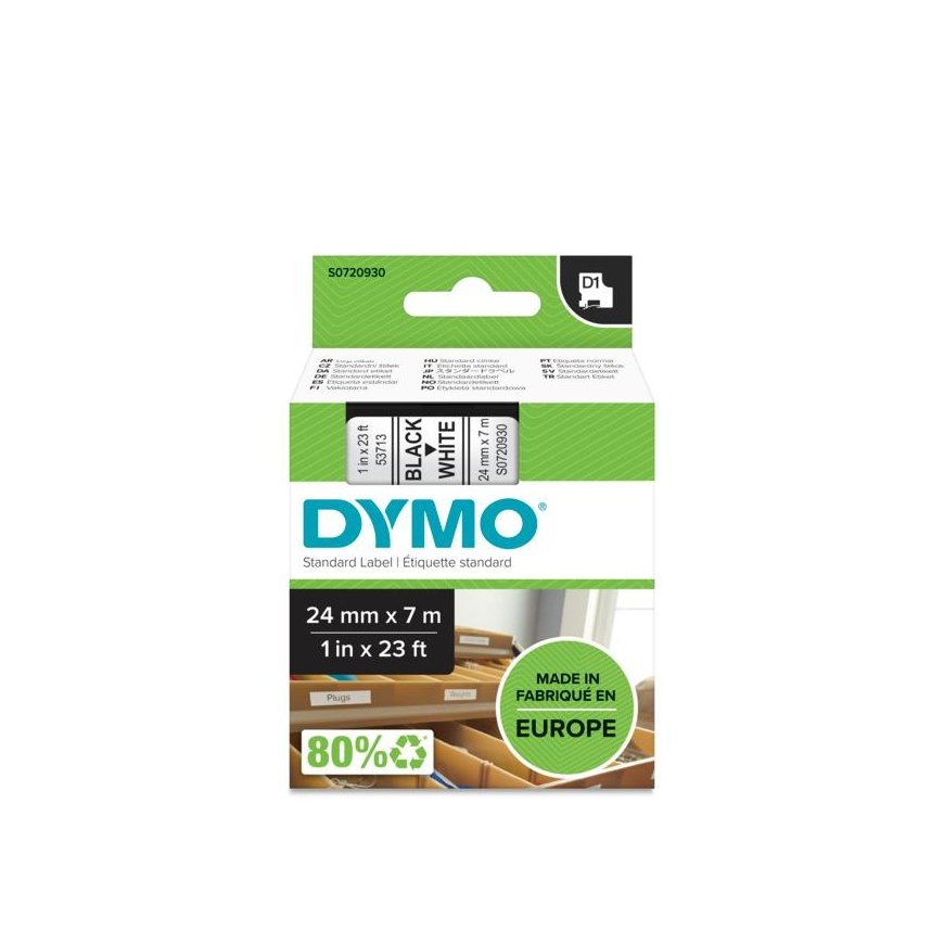 DYMO D1 -Standard Labels - Black on White - 24mm x 7m