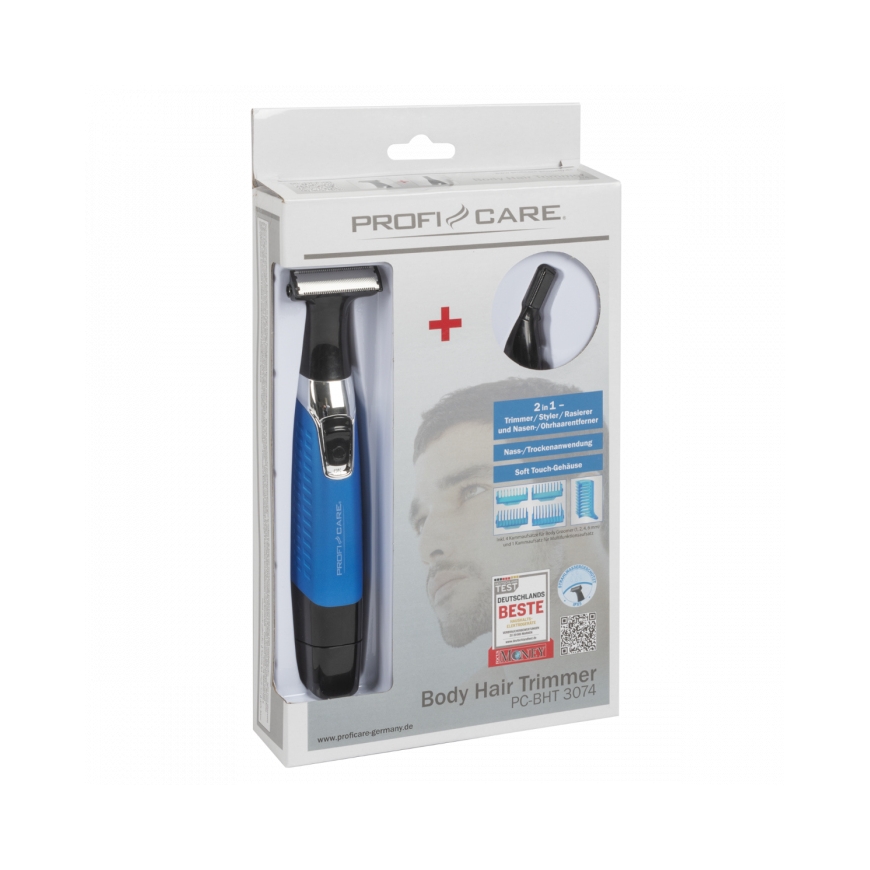 ProfiCare PC-BHT 3074. Цвет товара: Черный, Синий, Форма: Прямоугольник. Источник питания: Аккумулятор, Тип батареек: AA. Тип гребня: Фиксированный